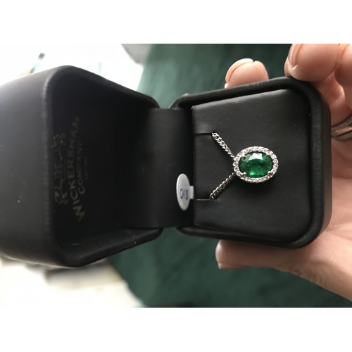 18k wg emerald diamond halo pend
