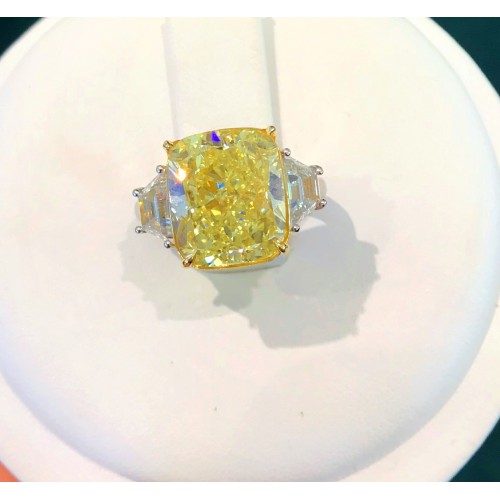 Platinum and 18 yellow gold fancy yellow diamond and diamond ring. Fancy yellow diamond at 10.03 carats.