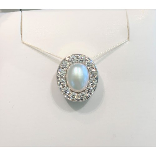 - Product Code: 18 karat white gold pearl/ diamond pendant
