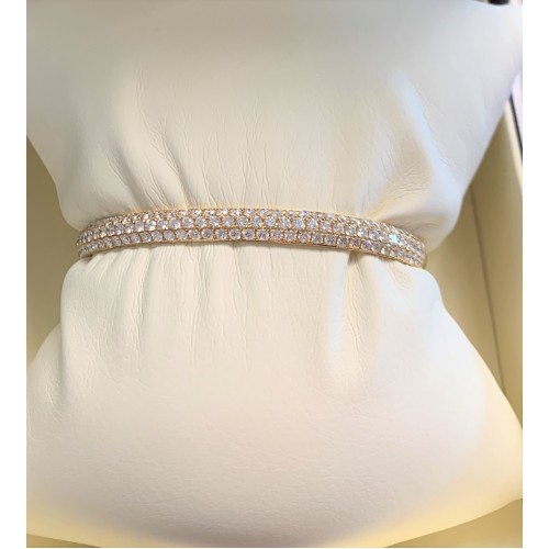 18 karat yellow gold and diamond pave bangle. One hundred and nineteen round brilliant diamonds at 3.13 carat total weight.
