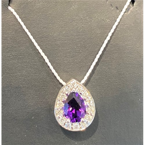 Product Code: 18 karat white gold amethyt and diamond pear pendant